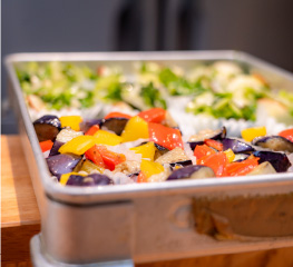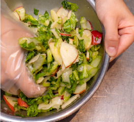 地産と旬の農産物を使用し、輸送コストと輸送に関わる環境への影響を減らします。