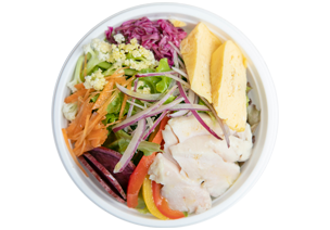 千葉県産地元のお野菜を中心に旬のお野菜たっぷりのボウルです。 タンパク質多めのお気軽ヘルシーフード。 ご希望の場合は、少量の黒米ご飯をお入れすることもできます。