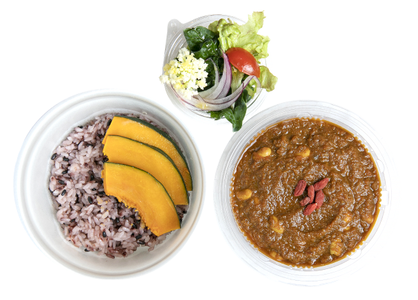お肉・小麦粉・バターは使わず野菜たっぷりのカレーは、お野菜をコトコト煮、じっくり手間をかけて作ってます。 1日に必要な野菜の摂取量をこれ1食で半分摂取できる、食べれば食べるほど健康になれる少しスパイシーなカレーです。